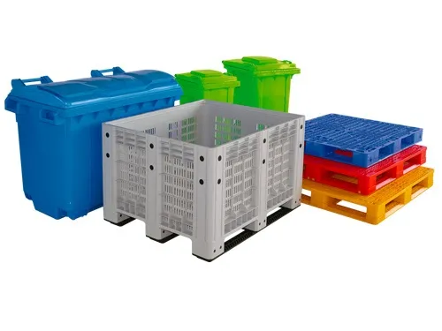 Логистикалық салада пластмассаны қайта өңдеу сенімді әрі жеңіл тасымалдау шешімдерін жасауды талап етеді. Оларға ірі контейнерлер, бөшкелер, барабандар, жәшіктер, қораптар, пластик поддондар және бөтелкелерге арналған лотоктар жатады. Негізгі талаптар: тасымалдау шығындарын азайту үшін бұйымның өз салмағын мүмкіндігінше төмен ұстау, қабырға қалыңдығы аз болғанның өзінде жоғары беріктік, сондай-ақ механикалық жүктемелер мен ауа райы жағдайларына төзімділік.